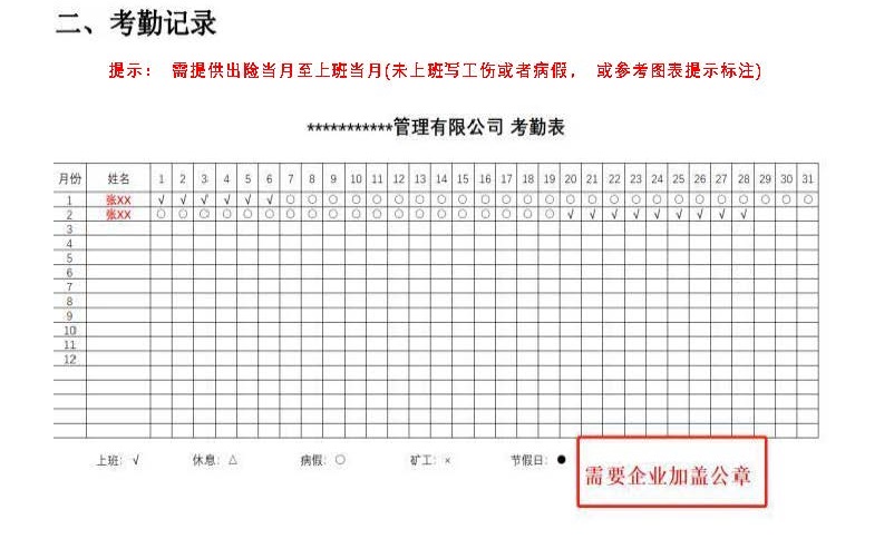 2、病假期间的考勤表