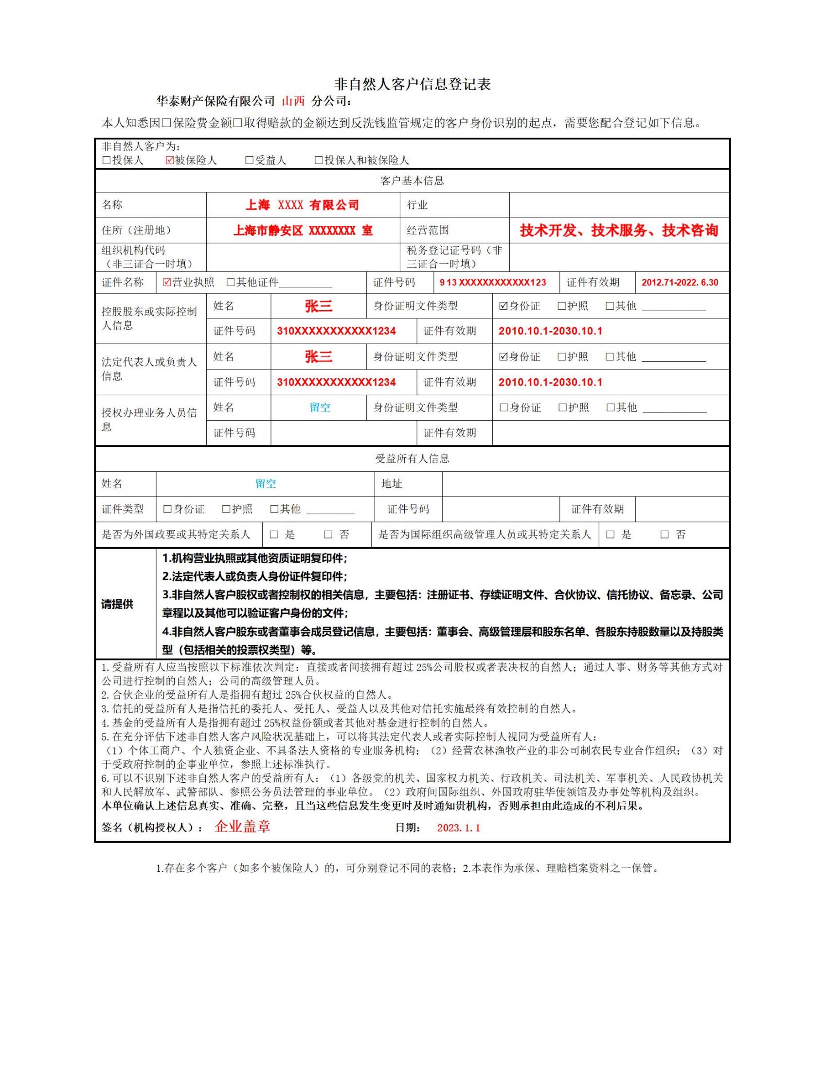 3、理赔万元以上需填非自然人客户信息登记表